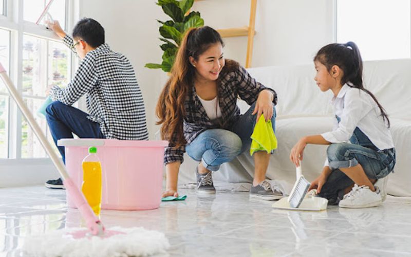 Cả nhà cùng dọn dẹp sẽ vừa vui vừa nhanh hơn, người lớn có thể phụ trách các khu vực lớn như phòng khách, bếp; trẻ nhỏ có thể sắp xếp góc học tập, đồ chơi. Điều này giúp tạo không khí sum vầy, gắn kết trước Tết.