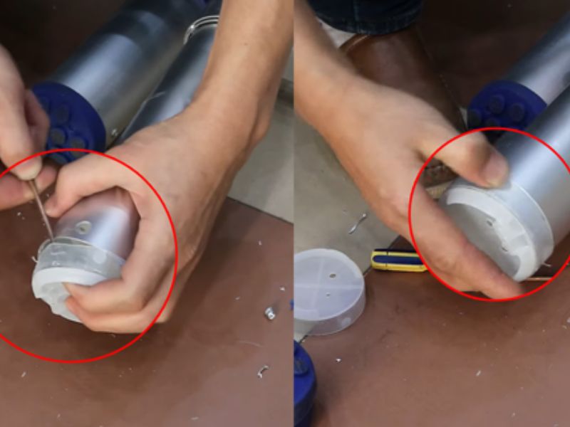 Tiếp theo, vệ sinh sạch phần đầu ống nhôm để loại bỏ bụi bẩn và mảnh cao su còn sót lại. Đặt chân đế mới vào đúng vị trí, ấn chặt cho khít hoàn toàn. Nếu có vít cố định, siết chặt lại nhưng không nên siết quá mạnh gây biến dạng cao su.