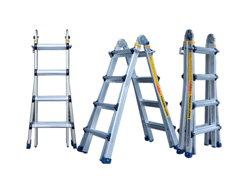 Ngoài ra, thang nhôm gấp đa năng cũng được ưa chuộng bởi khả năng biến đổi linh hoạt thành nhiều kiểu dáng: chữ A, chữ I hoặc dạng giàn giáo nhỏ. Đây là lựa chọn lý tưởng cho các công việc yêu cầu thao tác lâu trên cao như sơn trần, dán trần thạch cao hoặc treo đèn lồng trang trí Tết. Sự đa dạng về mẫu mã cho phép người dùng tùy chọn loại thang phù hợp với nhu cầu và không gian nhà ở.