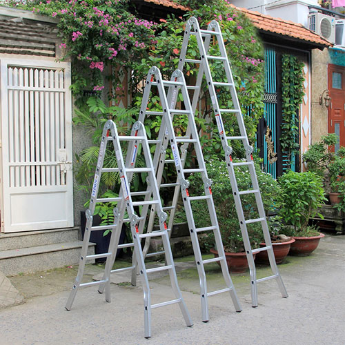 – Thang gấp với nhiều tư thế khác nhau như: A, L, U, M, I… hay còn gọi là thang gấp đa năng.