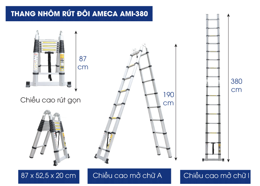 Thông số kỹ thuật thang xếp đôi đa năng AMECA AMI-380